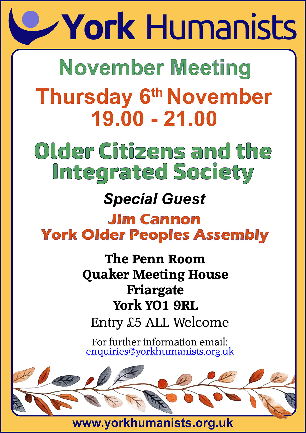 York Humanists are a community of the non-religious based in the city of York. We are open to all residents of York and environs.